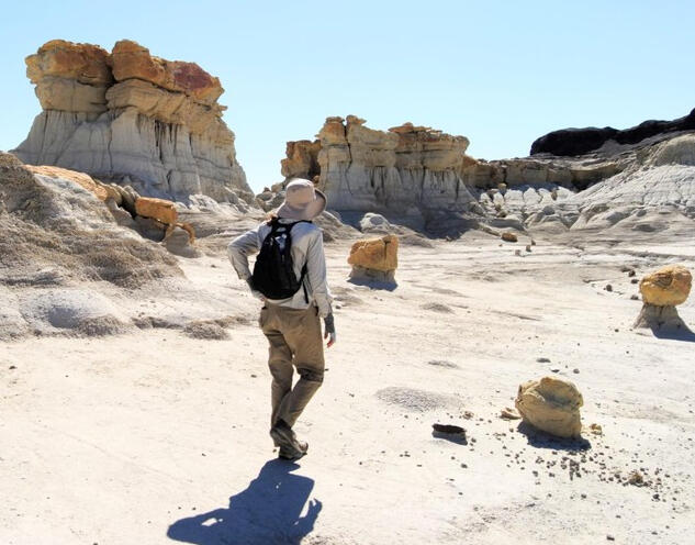 Erosion by Water and Wind: The primary sculpting forces in the Bisti/De-Na-Zin Wilderness are water and wind erosion. Rainwater, especially from intense storms, erodes softer rock layers more quickly than harder layers, creating the varied and intricate landscape seen today. Wind also plays a significant role by blowing away loose particles and further sculpting the rock.